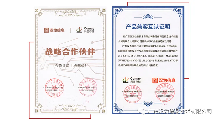 广东汉为信息技术有限公司(以下简称“汉为”)和苏州科美信息技术有限公司(以下简称“科美”)积极响应习总书记号召,开展国产化CPU、操作系统和工业存储合作,建立更为紧密和长期稳定的合作关系。双方经过深层次沟通,围绕行业用户自主可控系统升级改造与系统建设等方面签订战略合作协议,建立战略合作伙伴关系,形成优势互补、互助协作、互利共赢的发展格局。