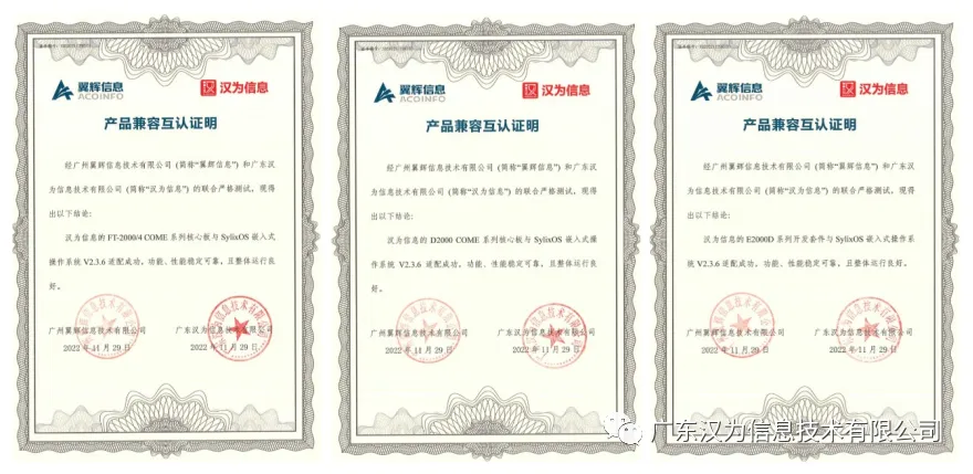 汉为信息的FT-2000/4 COME、D2000 COME 系列核心板,E2000D系列开发套件与SylixOS 嵌入式操作系统 V2.3.6 适配成功,功能、性能稳定可靠,且整体运行良好。
