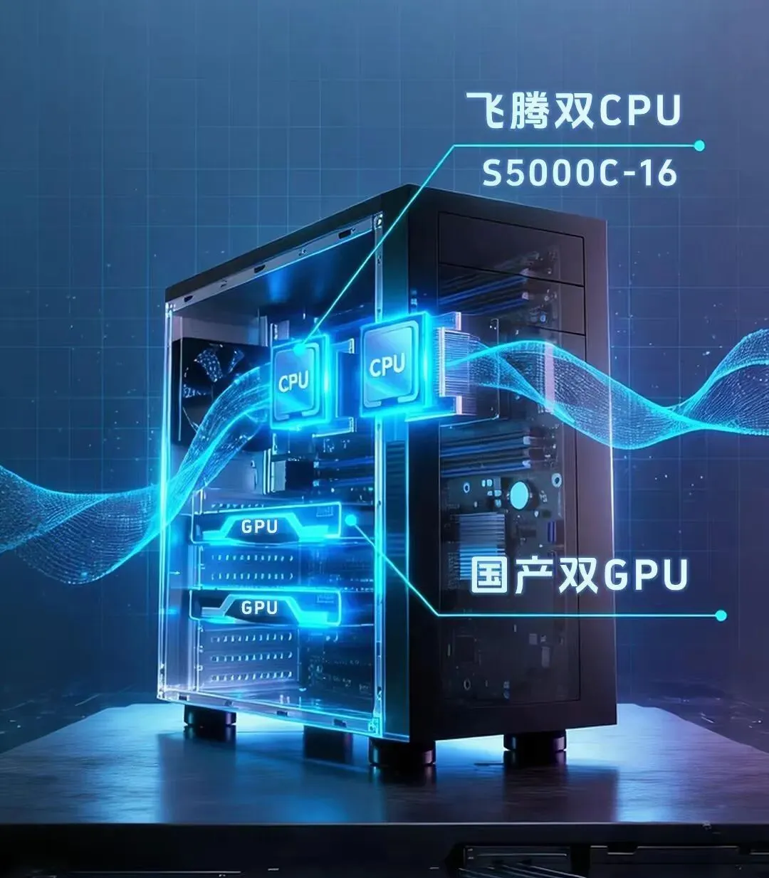 搭载 飞腾腾云 S5000C 处理器,配合高速抗震内存与 NVMe 存储,具备高并行计算与数据吞吐能力;