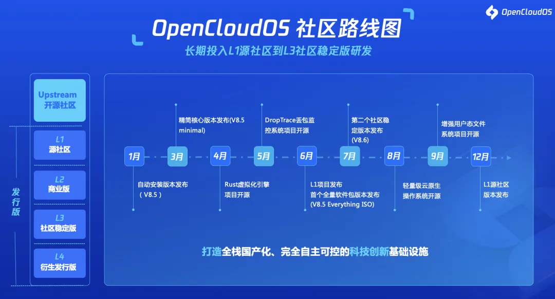 操作系统 OpenCloudOS 的全链路国产化是一个起点,坚持多元化的技术输入、长期主义的技术路线,国产操作系统生态必将在开源共建中壮大成长。
