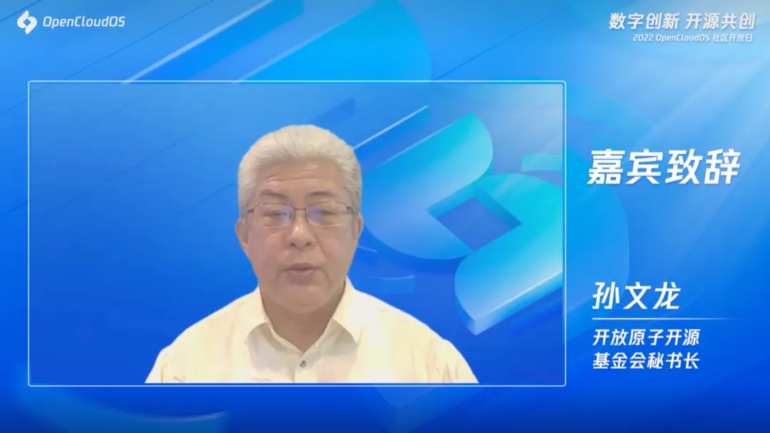 在 2022 OpenCloudOS 社区开放日上,开放原子基金会秘书长孙文龙发表致辞:
