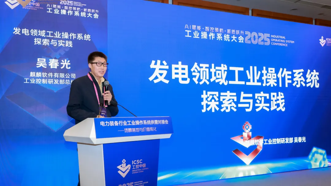 在“电力装备行业工业操作系统”供需对接会,麒麟软件工业控制研发部总经理吴春光展示了麒麟软件与上下游伙伴共建的生态成果,及其在能源电力领域的典型应用案例。在大会核心技术“内核突破与AI融合”论坛,麒麟软件与来自芯片企业、软件厂商、行业用户的专家代表,围绕工业操作系统内核创新、AI原生能力构建、异构算力调度等前沿议题展开深度研讨,阐述了AI与操作系统深度融合在提升系统资源调度、运维管理及安全预警智能化水平方面的具体路径与价值。