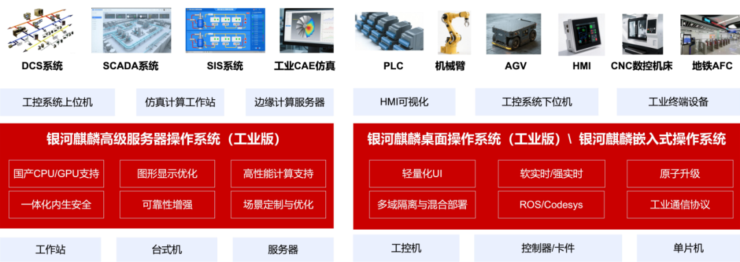 目前,银河麒麟工业操作系统系列产品已应用于能源电力、轨道交通、智能制造等关键领域,应用场景覆盖工业控制上、下位机以及工控机等场景。
