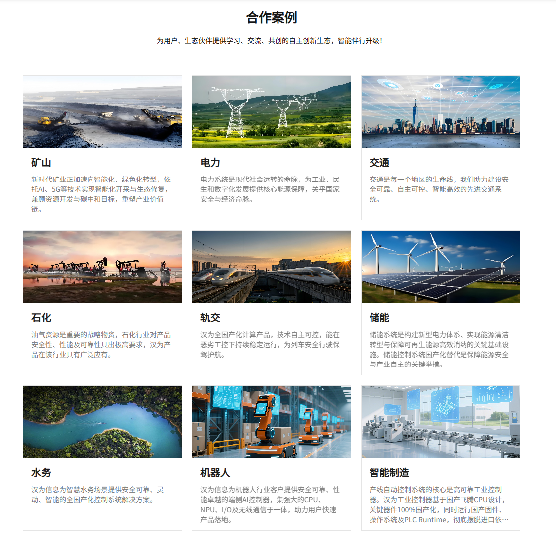 未来,汉为信息将继续为丰富国产高可靠计算产品生态贡献力量,让国产高可靠计算不仅仅满足于替代,而更应抓住转型契机推动关键产业的 AI应用与数字化升级。为能源、矿山、交通、制造等关键领域提供更具竞争力的自主化解决方案,让工业控制与 AI 技术深度融入产业核心,助力工业数字化转型迈向安全可控新高度。
