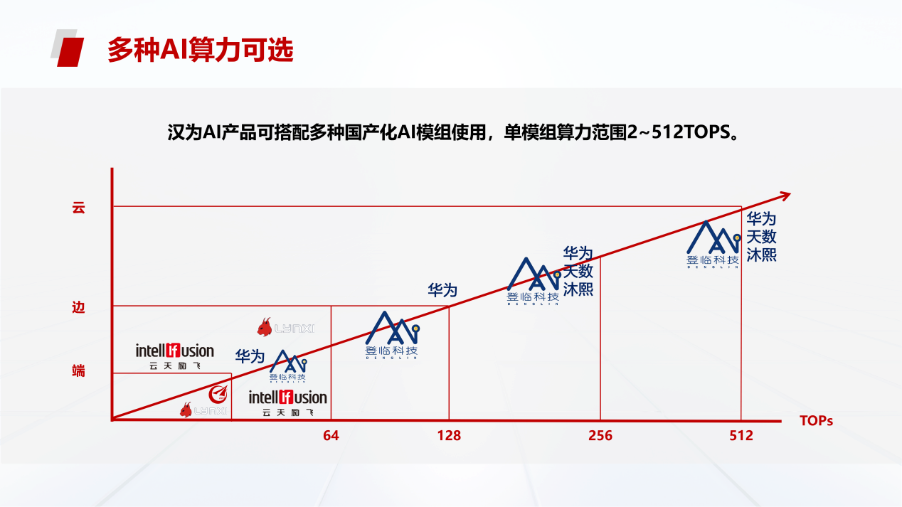 面对迅猛发展的AI浪潮,汉为积极拥抱“AI + 国产工控”深度融合的趋势。该模块化AI工控机作为端侧设备,全系支持AI能力扩展。已适配华为、登临、云天励飞等国产 AI 模组,在端侧支持算力 2-70TOPS,可按需配置算力,并提供全链条技术支持服务,实现视觉检测、边缘推理、设备预测性维护等场景的快速落地,助力工业现场智能化升级。